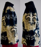This is the New Orleans Saints fleece jacket I just completed. A full zipper up jacket lined with anti-static Bemberg fleece so I won’t get electrocuted wearing it, and not just a fleece vest unlined like so much fleece wear you find. The project was the most inefficient and challenging I’ve taken up to date because I was trying too many new things at the same time.