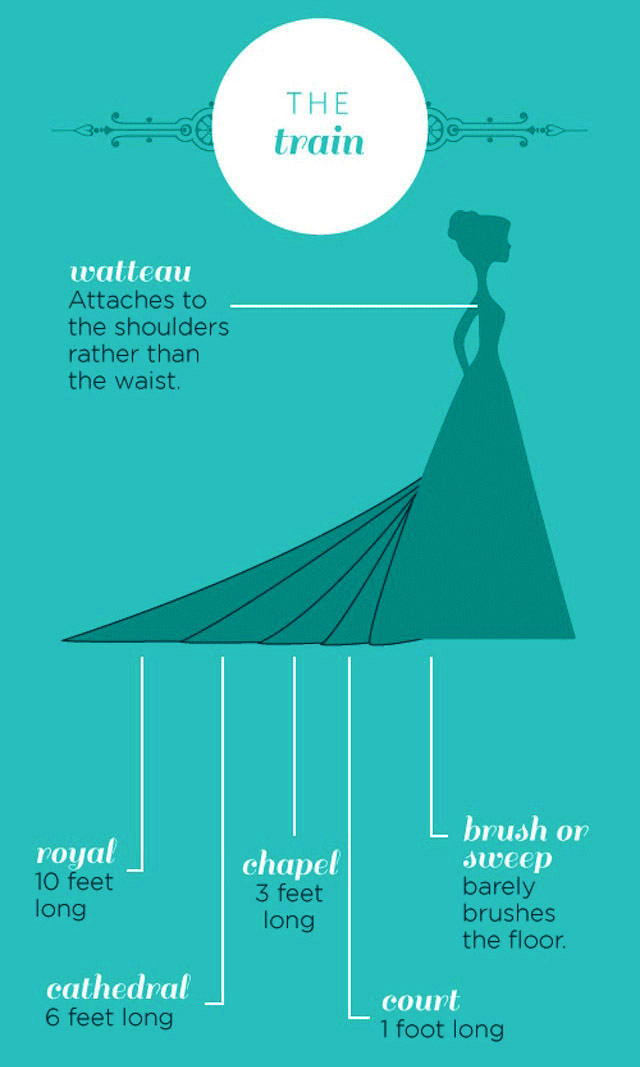 wedding dress, train, styles, names, fashion, terms, infographic