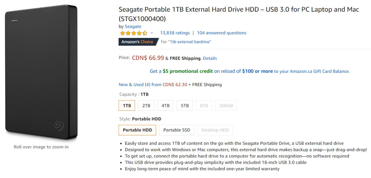 1 TB External HD (May 2020)